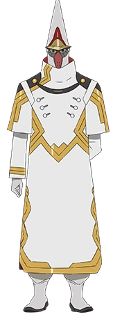 El vicepresidente usa una túnica blanca adornada con detalles dorados y un interior rojo. Utiliza una máscara como el resto del consejo.