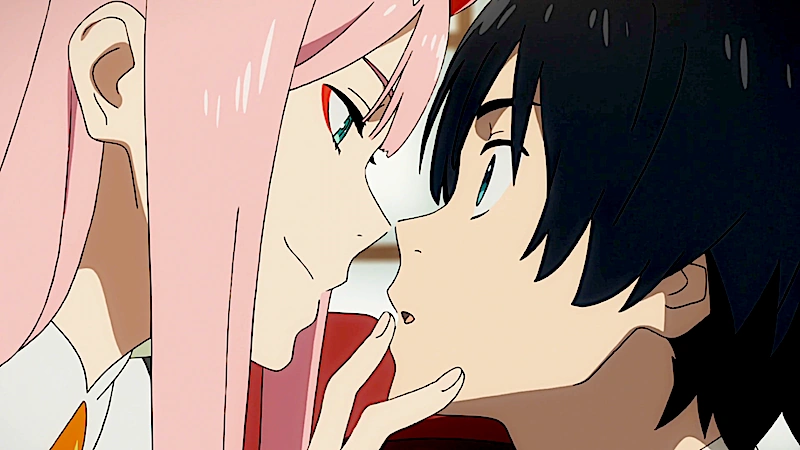 Zero Two and Hiro's first kiss to reactivate Iron Maiden Strelizia