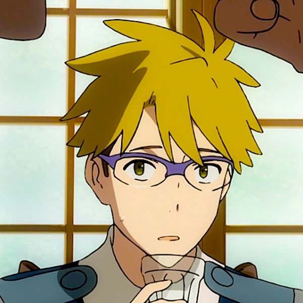 In "Episode 1: Alone and Lonesome!", Zero Two saves Futoshi and the other Parasites from the klaxosaur attack during the welcoming ceremony. After the battle, he looks on as she not only exits the Strelizia but that she is also carrying an unconscious Hiro out with her. He inferred that Hiro piloted the Strelizia