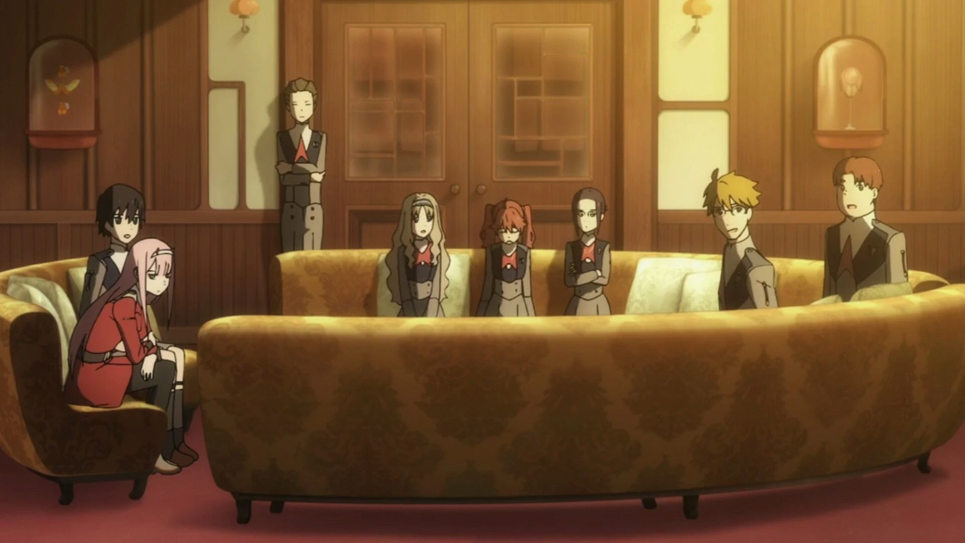 The 9’s, after everyone is abandoned and betrayed by Papa, decide to make atonement for their actions by helping Squad 13 rescue Zero Two in space as she fights VIRM. 9’a in particular demonstrates his desire to atone by sacrificing himself to save Hiro and his last words were for Hiro to give his regards to Zero Two.